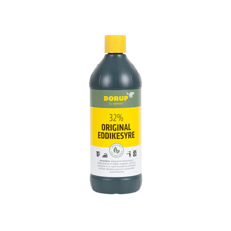 Tilsæt ca. 20-30 ml Eddikesyre 32% i sæbeskuffens ‘skyllemiddelrum’ pr. maskinfuld tøj.