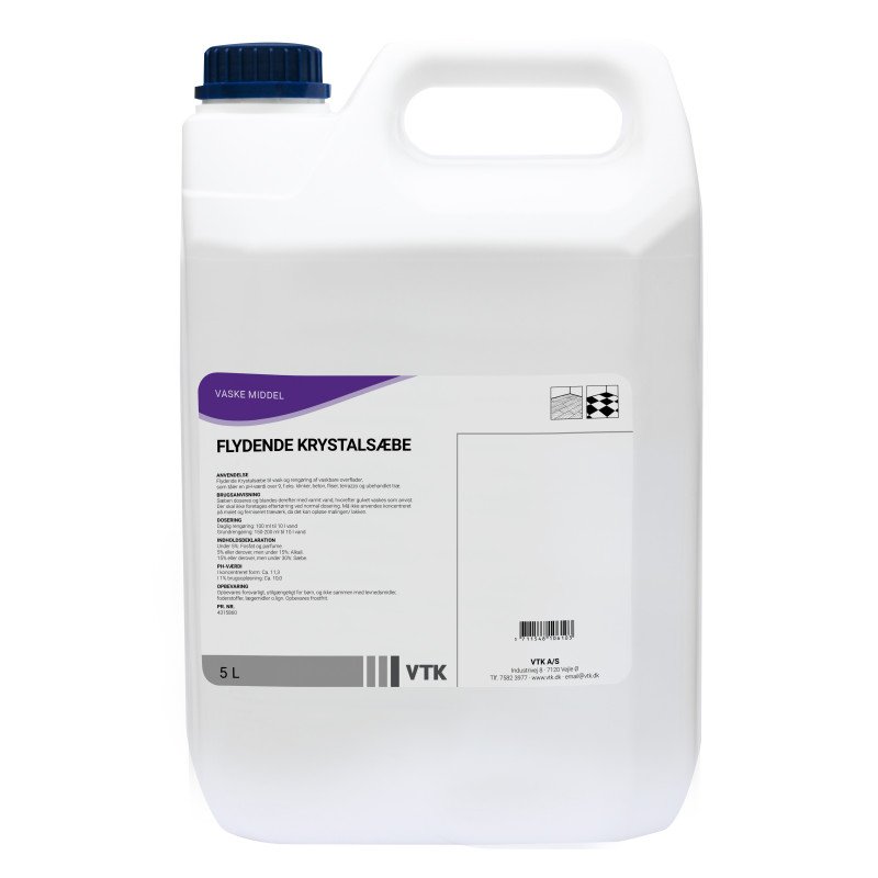 Flydende Krystalsæbe til vask og rengøring af vaskbare overflader, som tåler en pH-værdi over 9,